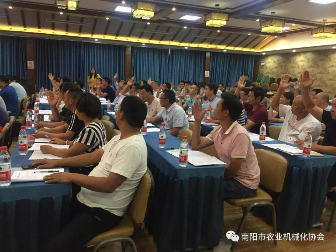 7月3日,南陽市農(nóng)業(yè)機(jī)械化協(xié)會(huì)成立大會(huì)在南陽市鷗凱印象酒店3樓會(huì)議室召開,南陽市農(nóng)業(yè)機(jī)械化管理局黨組書記、局長劉勤同志出席會(huì)議并做重要講話。選舉通過田云鎖(原南陽市農(nóng)業(yè)機(jī)械公司總經(jīng)理)同志當(dāng)選為會(huì)長,亞澳南陽農(nóng)機(jī)有限責(zé)任公司總經(jīng)理史炳哲、南陽奇豐機(jī)械有限責(zé)任公司董事長趙順奇、鎮(zhèn)平縣糧豐農(nóng)機(jī)農(nóng)民專業(yè)合作社理事長薛云濤當(dāng)選為副會(huì)長。