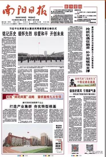 2017年 12月14日,南陽日報頭版報道唐河產(chǎn)業(yè)發(fā)展,我公司榜上有名。以下為報道全文。