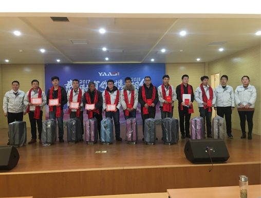 年度先進(jìn)個人獲得者為石強(qiáng)、陳朝龍、王文飛、王欣、楊常林、寧浩、鄭新春、田生文、白拴禮、趙自學(xué),優(yōu)秀班組長周長金,獎品Aksen旅行箱